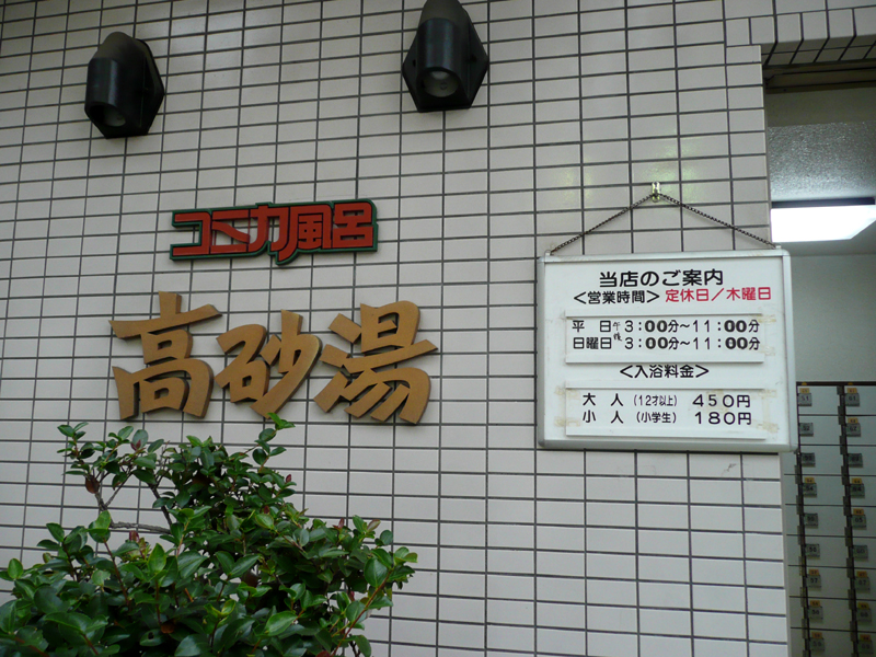 東京都浴場組合のサイトでは、高砂湯の営業時間は15:30~23:30となっているが、現在は開店、閉店時間ともそれぞれ30分繰り上がって15:00~23:00となっている。わたしとしては、このような変更は大歓迎である。